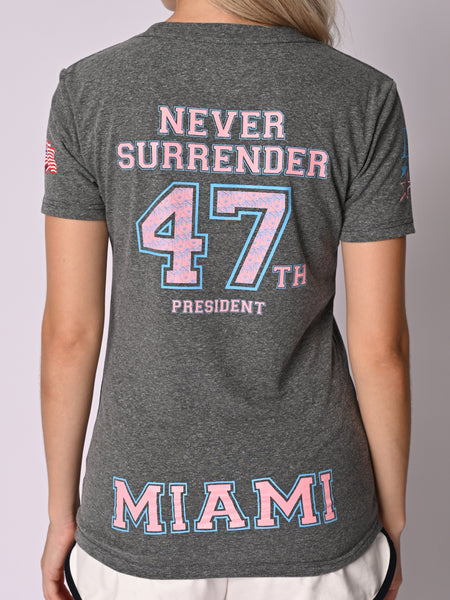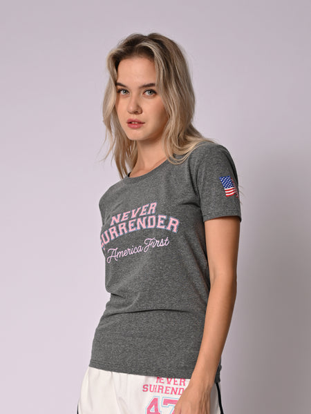 Our Miami signature t-shirt in Grey is adorned with a college-inspired design. Featuring detailed serigraphy at the back that echoes our brand theme, this piece carries the flag of the American pride always in a sporty, comfortable look to your wardrobe.