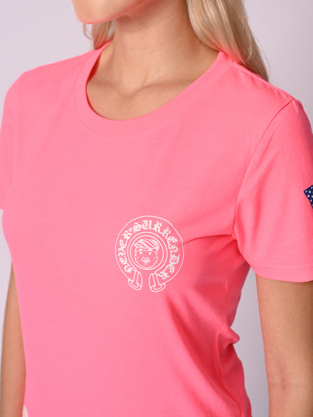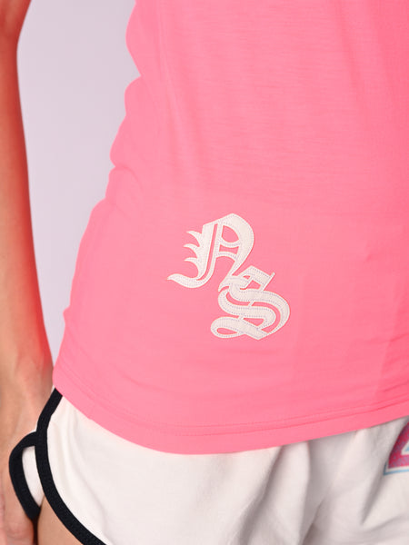 This gothic-inspired t-shirt in Pink showcases another facet of the brand. The vegan leather patches sublimate the style of this unique piece, adding a bold and edgy touch to your wardrobe, ensuring both style and comfort.