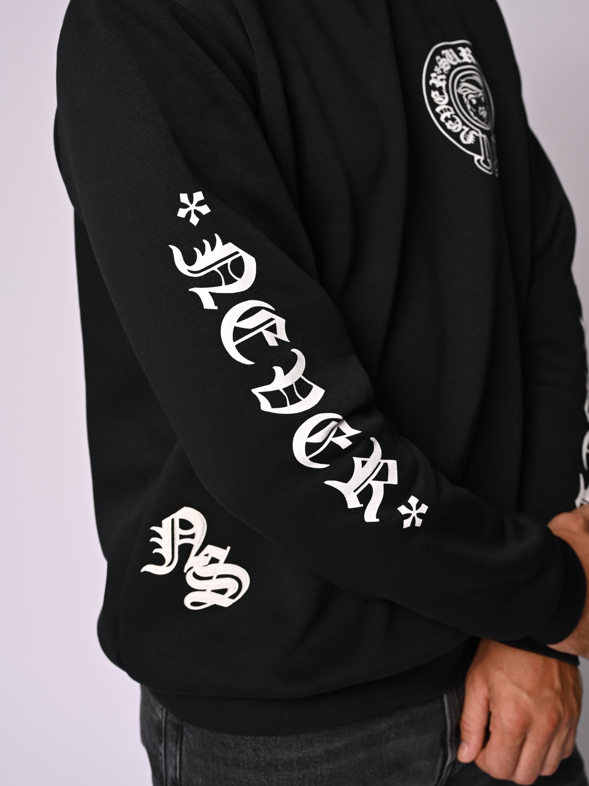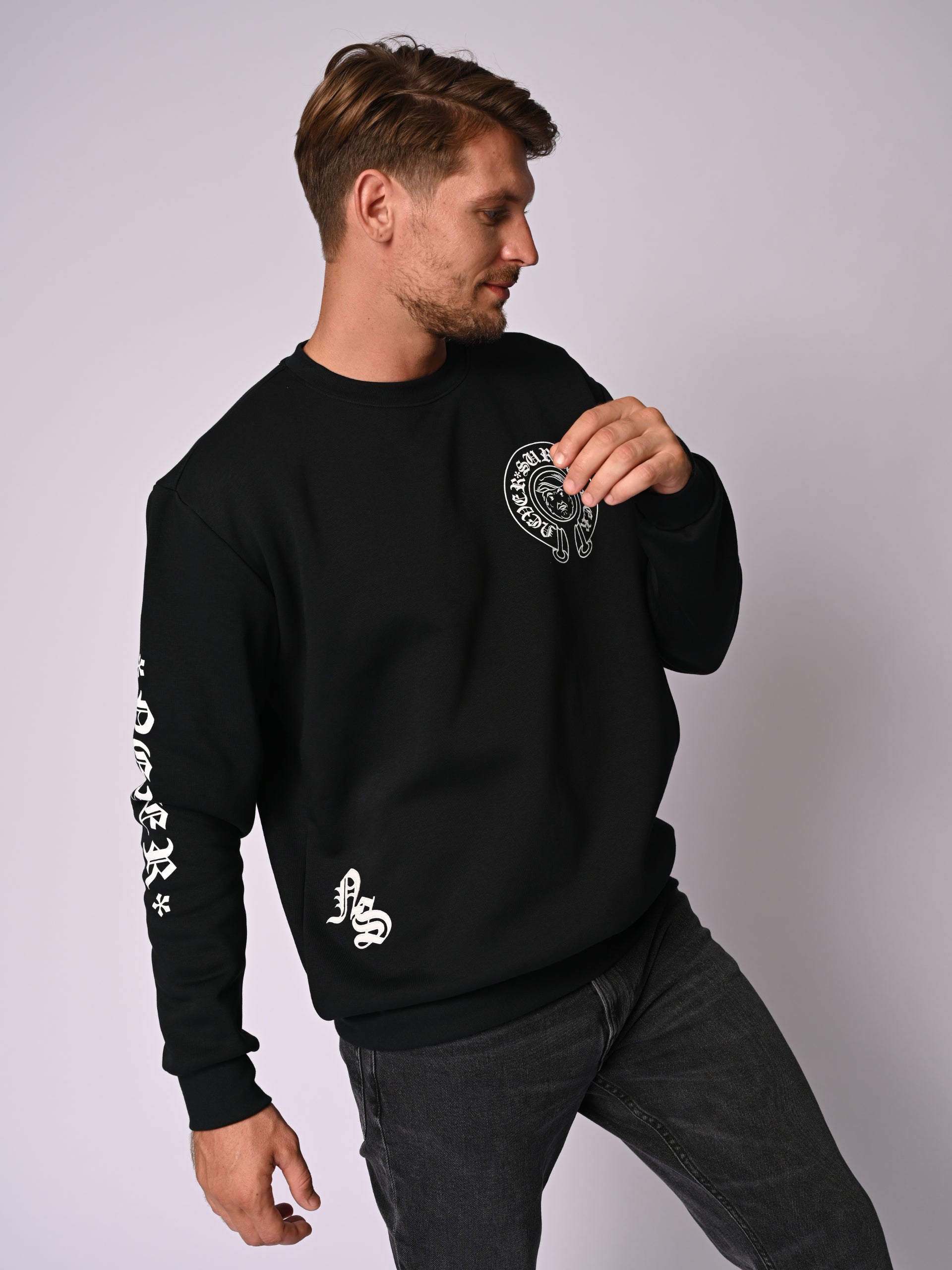 Our Horseshoe Crewneck Sweatshirt Black made with 100% organic cotton. Its iconic design and high quality construction make it a must-have item for any fashion-conscious individual willing to add some edge to their wardrobe.