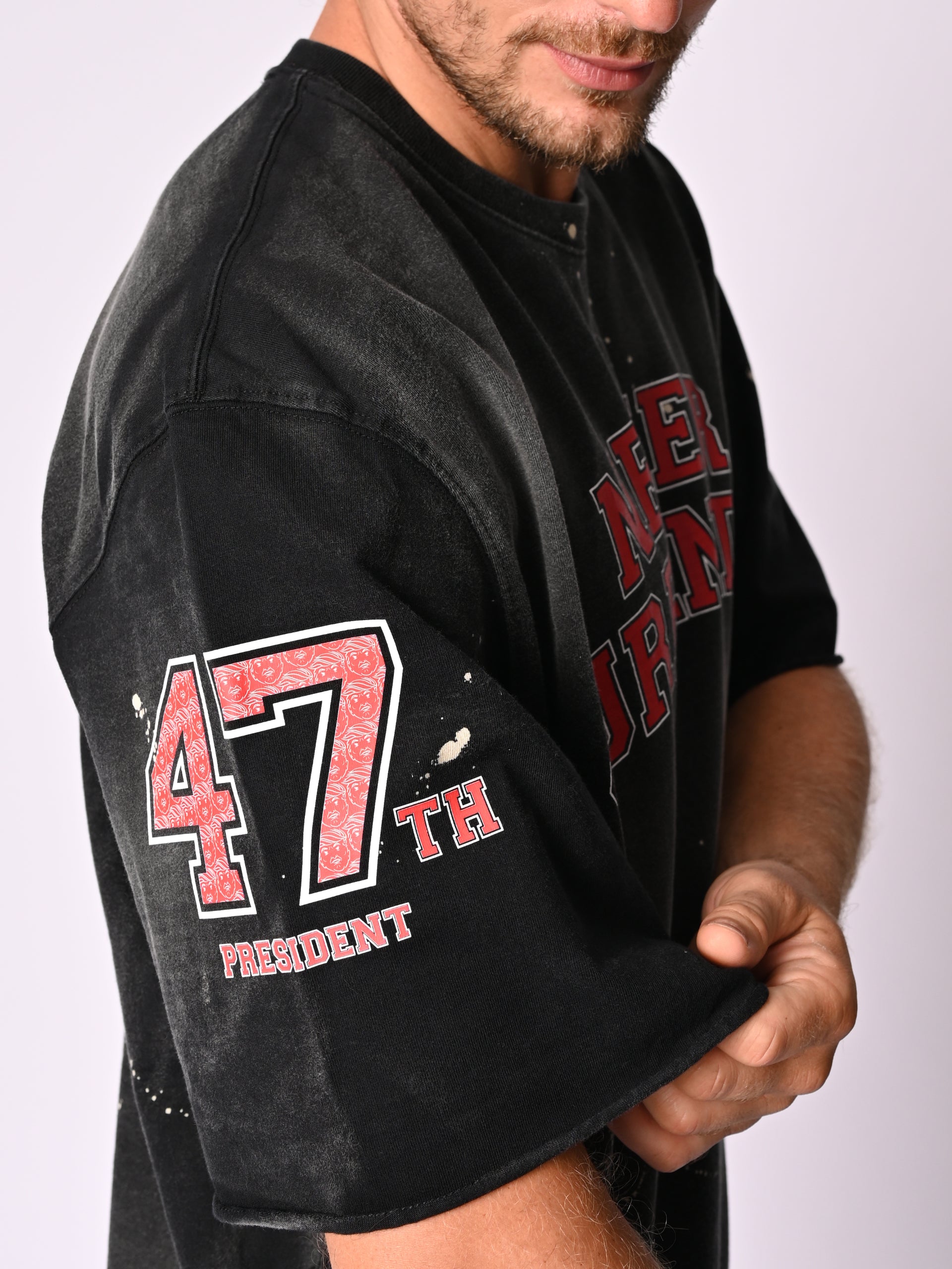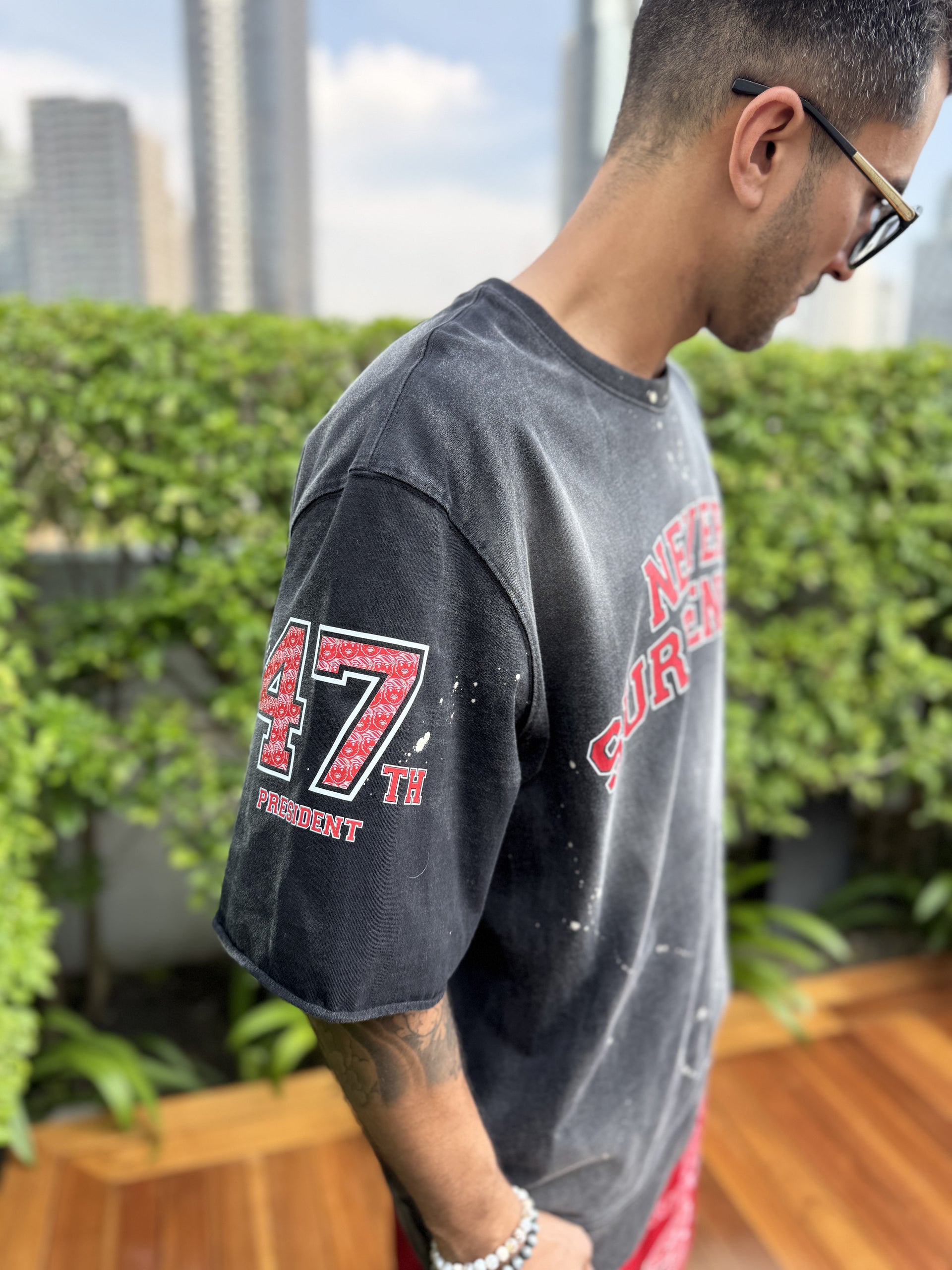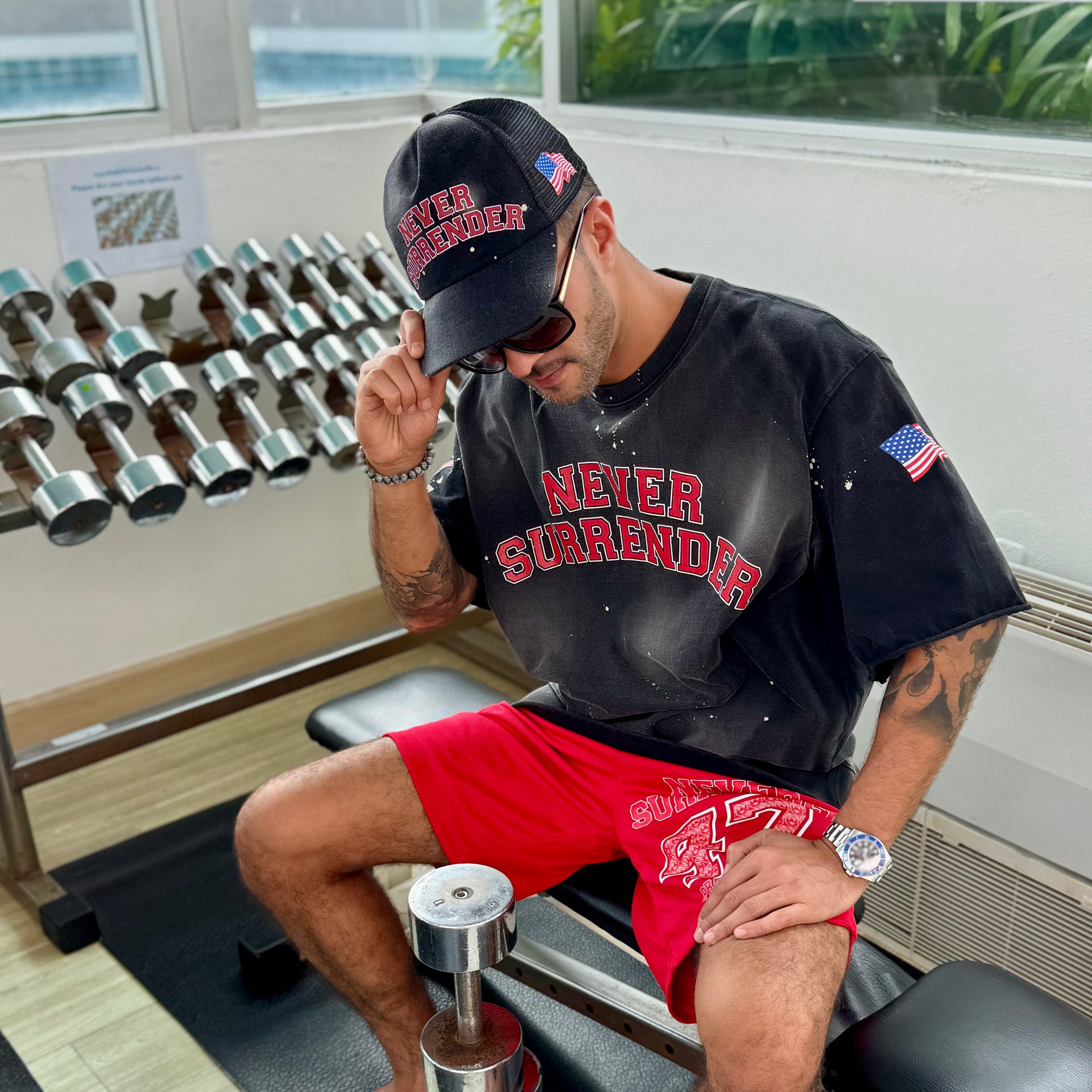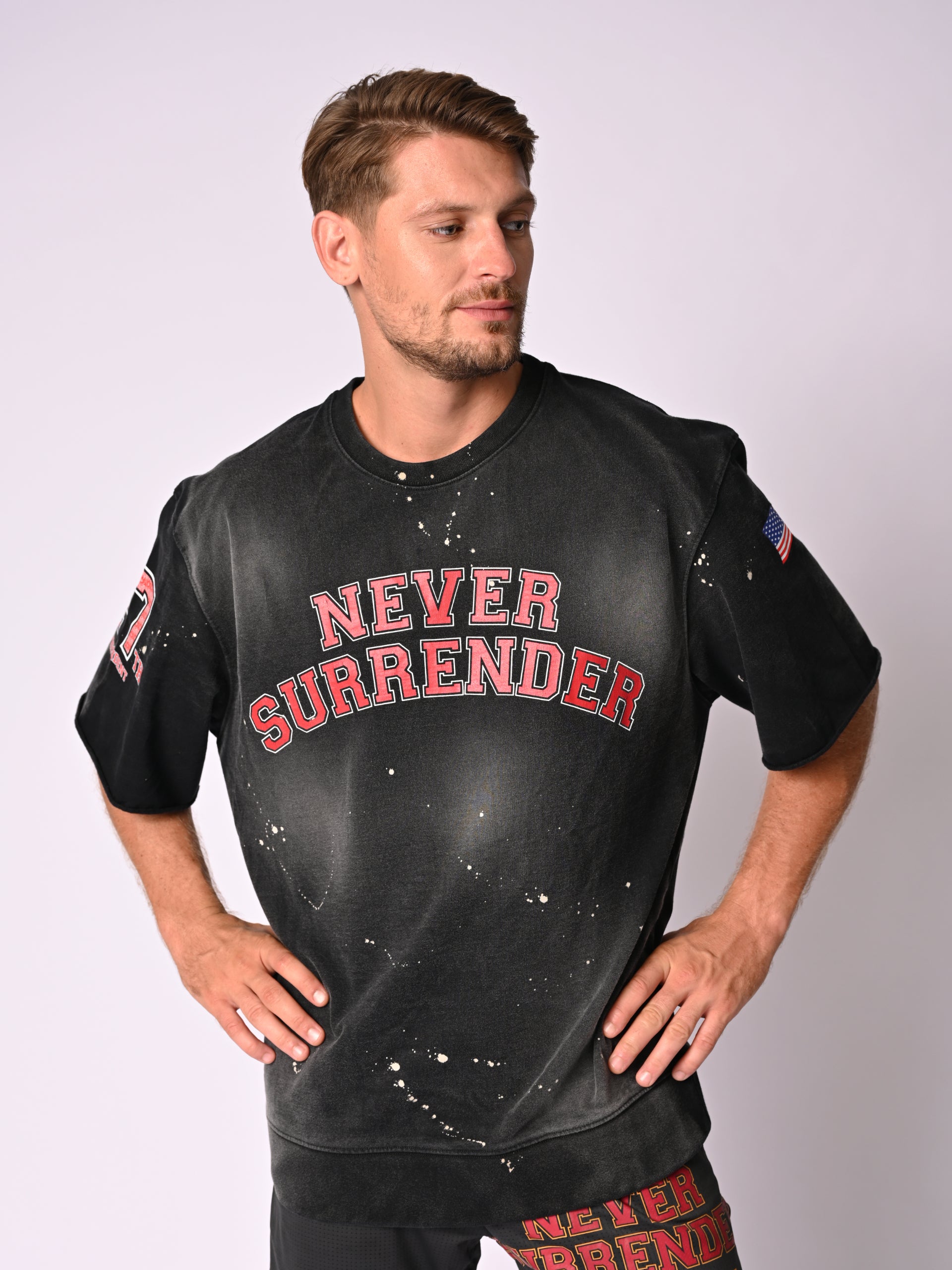 Oversized Distressed Black Sweatshirt Never Surrender Wear